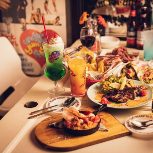 Conveniently located just 30 seconds walk from Shin-Koshigaya Station and 1 minute walk from Minami-Koshigaya Station.This easily accessible American diner can be rented out exclusively for groups of 15 or more.The colorful American space is perfect for banquets and after-parties.The popular American dishes, taco rice, and dessert courses can be added with all-you-can-drink options, making them great value for money.The location near the station makes it convenient for organizers, and it is very popular for parties with friends.
