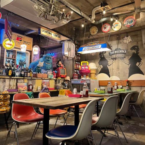 The interior of the restaurant is surrounded by colorful neon lights and character goods, making it feel like a toy box! The photogenic space is perfect for girls' nights out or birthday parties. This cute and lively American diner is popular with girls who want to have a fun time.With a wide selection of pop food and sweets, the conversation and photos are sure to flow naturally!